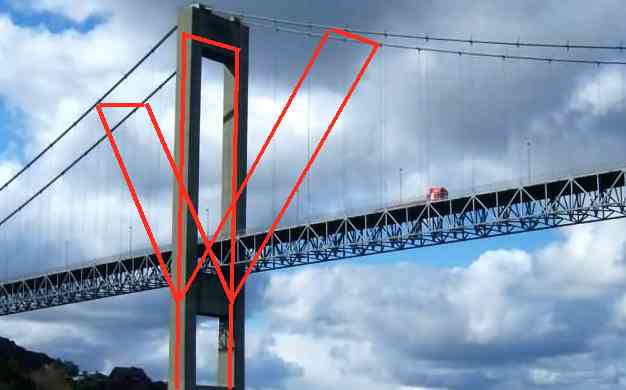 cables that the original single tower had to bear - so the